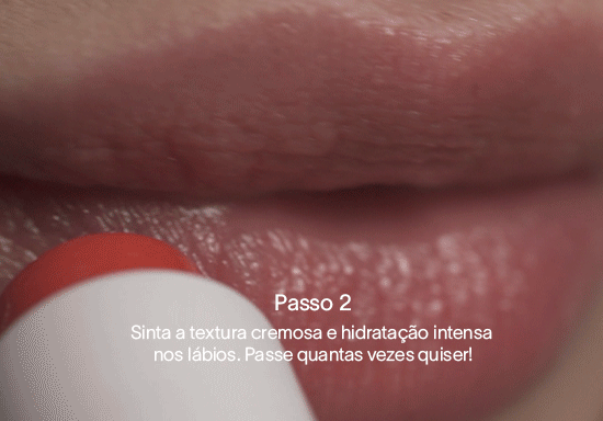 Tratamento para os lábios, podendo ser usado também em outras áreas do rosto para hidratar. Tem fórmula 100% livre de toxinas, sem parabenos, gases, talco e metais pesados.