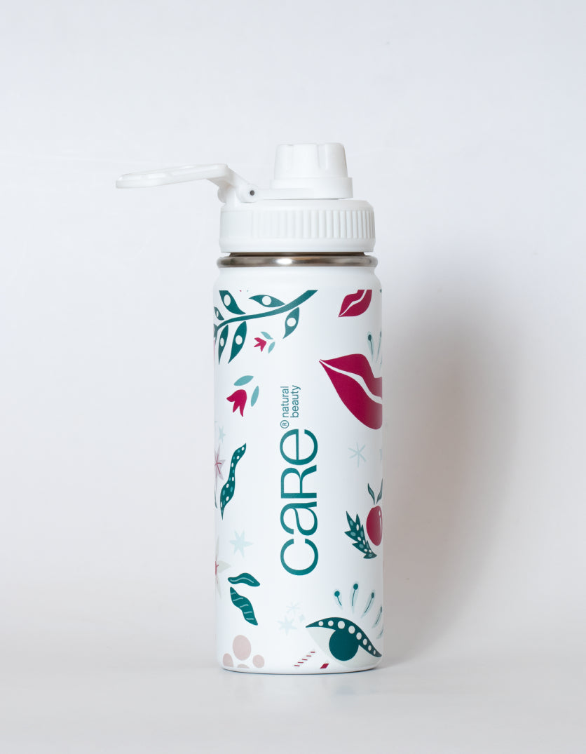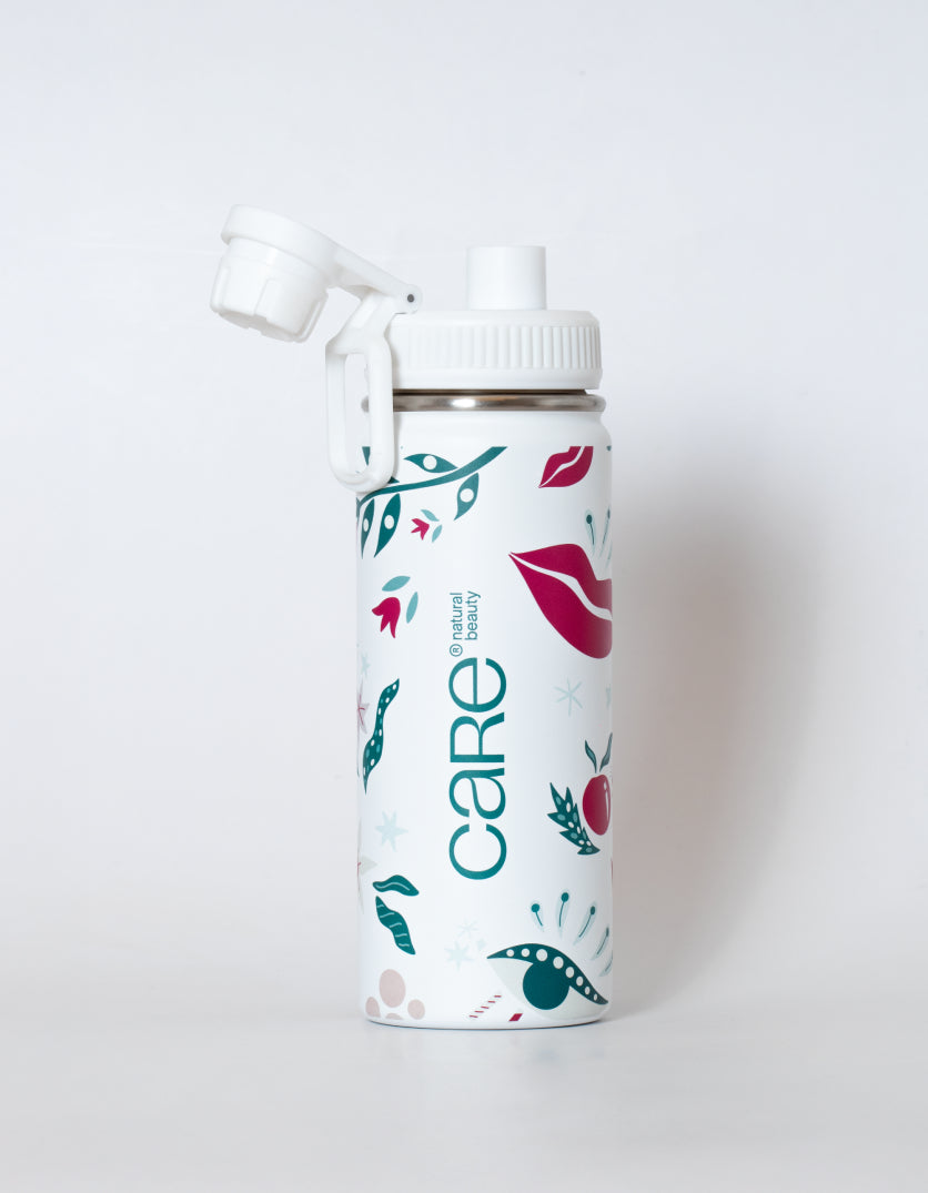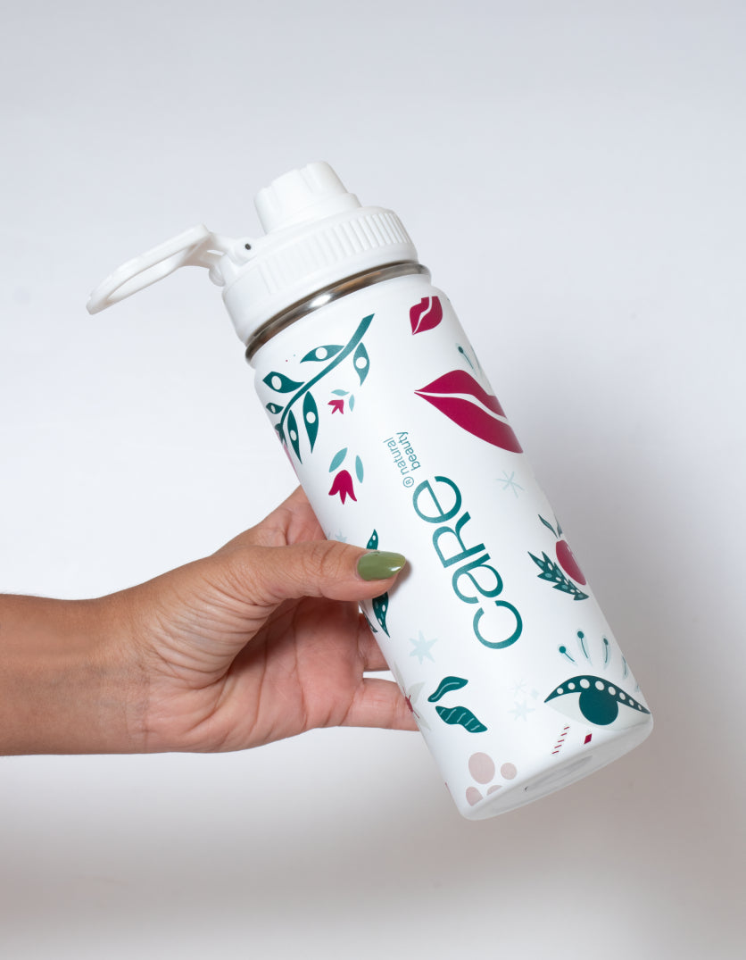 Garrafa térmica ilustrada pela renomada artista Ana Strumpf. Este produto é o seu aliado definitivo de skincare, que parte do princípio mais essencial: a verdadeira hidratação começa de dentro.