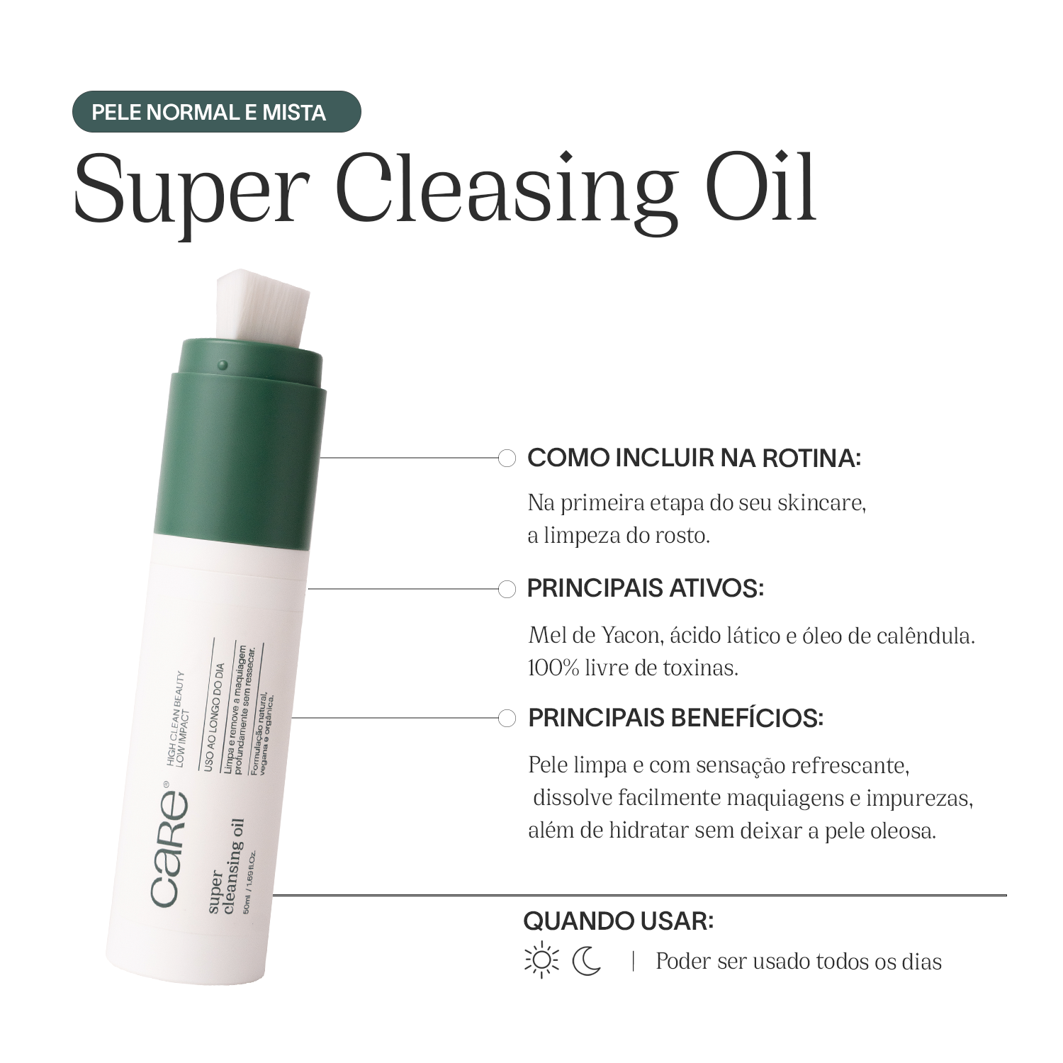 - Formulação vegana e 100% livre de toxinas;